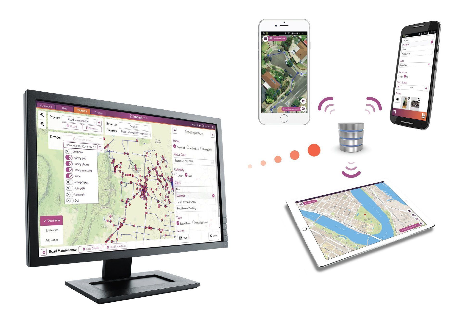Any data, including geospatial from any platform, can be shared across a range of departments in the one organisation or with sub-contractors.